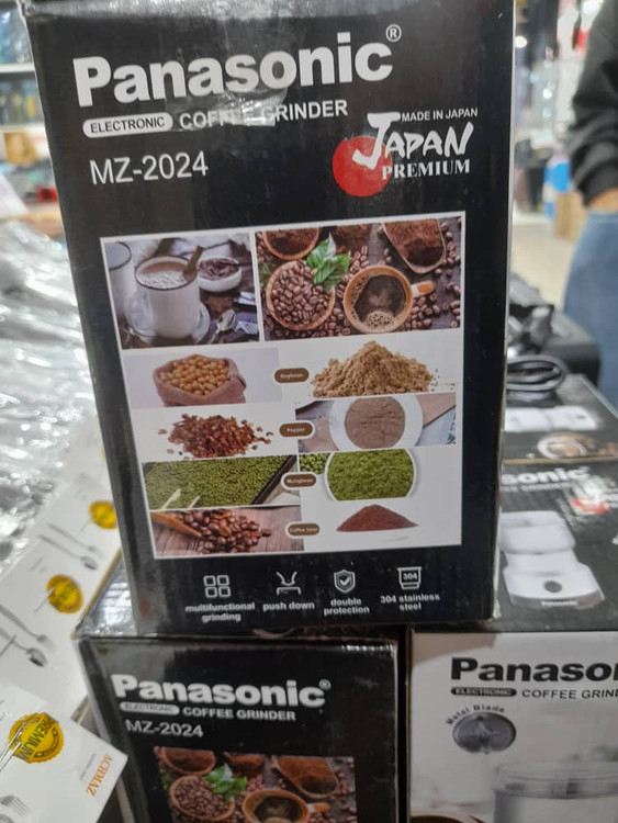 آسیاب پاناسونیک ساخت کشور ژاپن فوقالعاده عالی و خاص یکی از بهترین برند های بازار با موتور قوی که دور موتور ۶۰۰ وات میباشد و قوی مغزن ۱۵۰ گرم میباشد ۸ تیغه استیل دارد و تیغه های تیز و بدنه کامل استیل مخصوص همه ی ادویه جات و مخصوصاً قهوه و کاملآ پودر و آسیاب میکند یک چیز عالی مخصوص رستوران ها کافه ها و مخصوصاً خانه