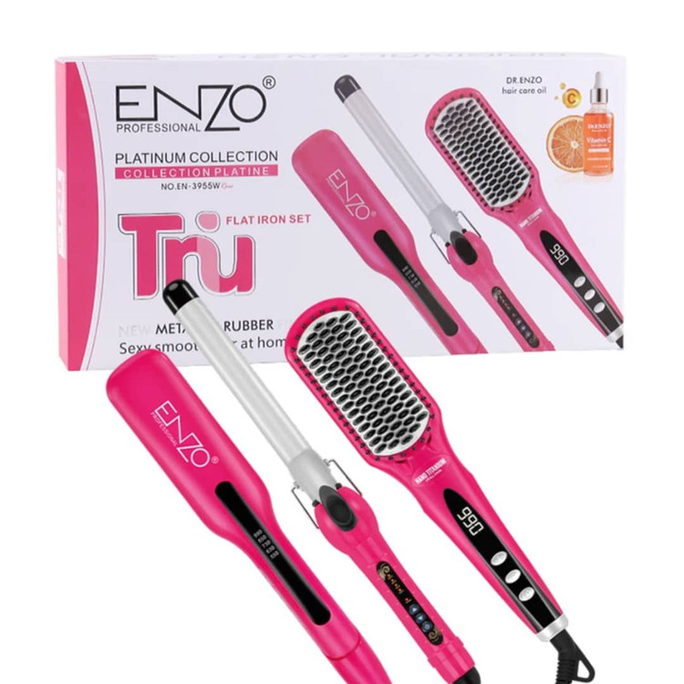 ست اتو مو و بابلیس و برس حرارتی انزو مدل رنگ زرد EN-3955
