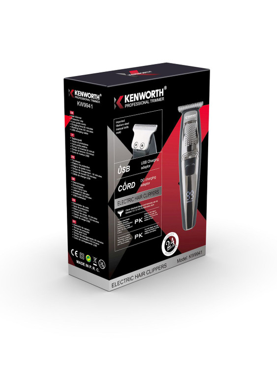 ماشین اصلاح موی کنورث مدل KW-9941 با طراحی منحصر به فرد برای اصلاح موهای صورت، بدن، سر و … کاربرد دارد. از ویژگیهای منحصر به فرد این دستگاه داشتن کابل یو اس بی است که شارژ کردن ان را در هر جایی امکان پذیر میکند مثلا در خودرو، با کامپیوتر و یا پاور بانک. اقلام همراه ماشین اصلاح موی کنورث مدل KW-9941 بطری روغن، برس تمیز کننده، کابل یو اس بی و پنج شانه تنظیم کننده در سایزهای 1.5، 3، 4.5 و 6 هستند. از دیگر امکانات این دستگاه داشتن صفحه نمایش ال سی دی است که میزان شارژ دستگاه را نمایش میدهد. جنس تیغه ی این محصول از استیل ضد زنگ است که در مقابل خوردگی مقاوم است و طول عمر آن را بالا میبرد و از حساسیت و خارش پوست بعد از اصلاح میکاهد. مدت زمان لازم برای شارژ این دستگاه 1.5 ساعت و پس از شارژ کامل به مدت 120 دقیقه میتوان به صورت مداوم از ان استفاده نمود که این مدت زمان کوتاه شارژ شدن و در مقابل مدت زمان طولانی استفاده مداوم از برتریهای مدل KW-9941 است. سعی کنید برای روغن کاری این محصول حتما از روغن مخصوص که در بطری در اختیار شما قرار گرفته استفاده کنید زیرا اثار بقیه ی روغنهای نامناسب بر روی دستگاه باقی میماند.